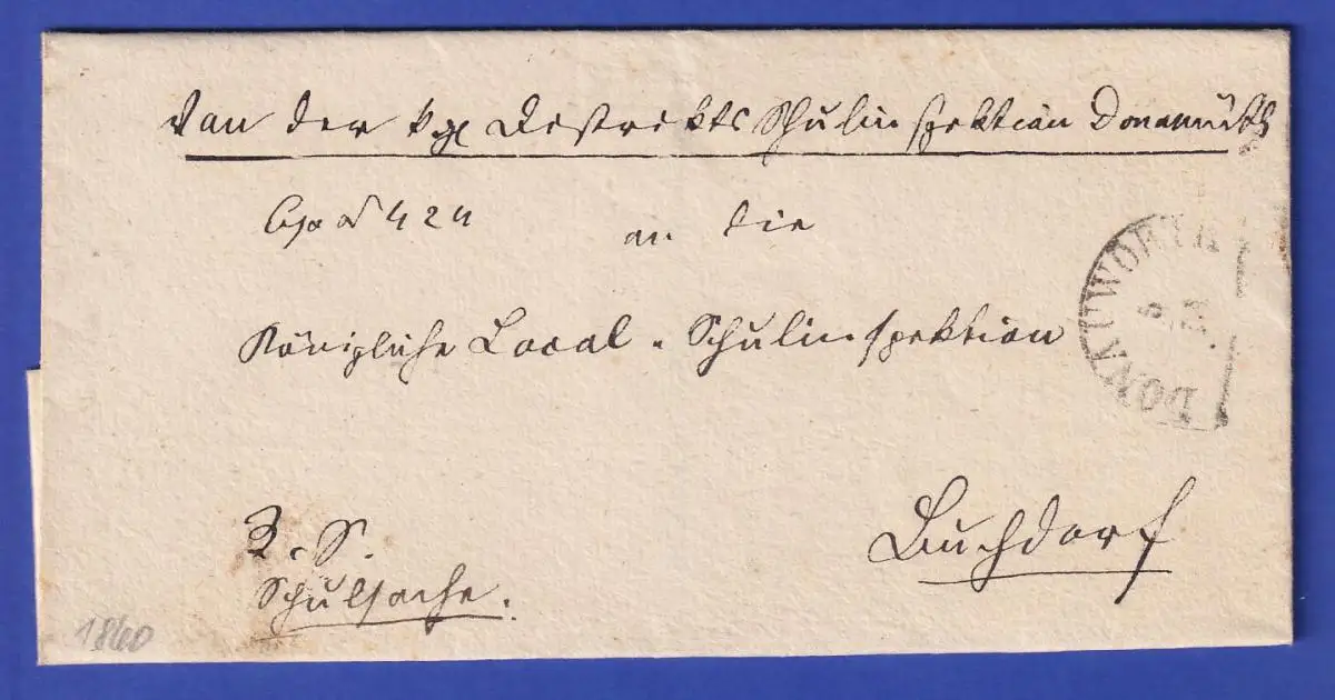 Bayern Dienstbrief mit Halbkreis-Stempel DONAUWÖRTH 1860