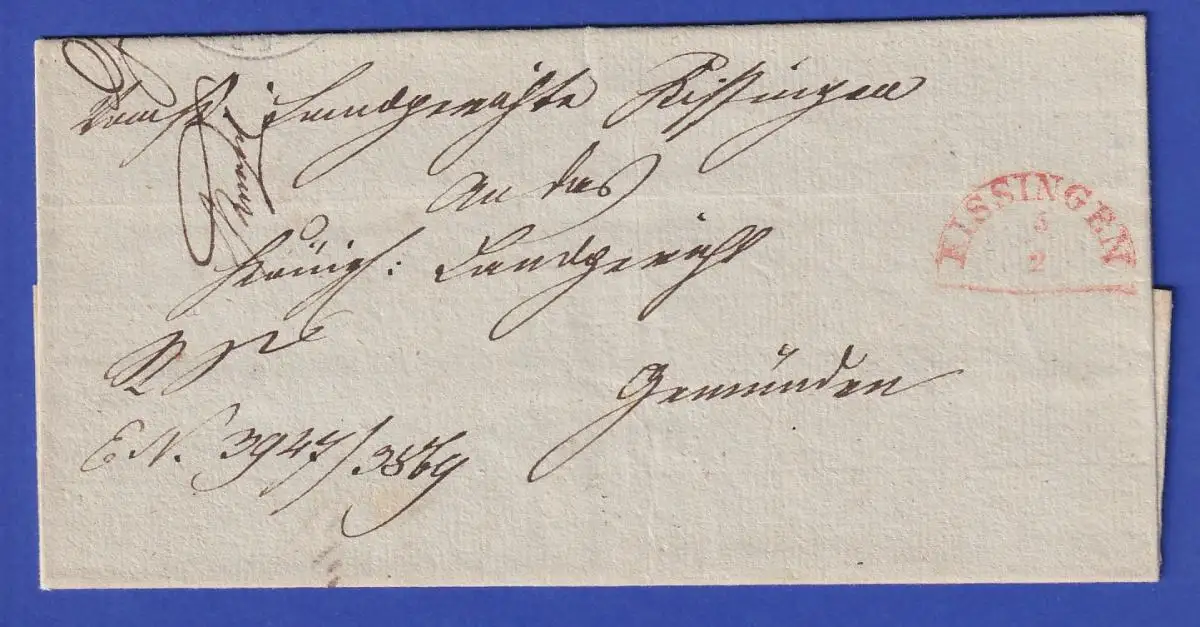 Bayern Dienstbrief mit Halbkreis-Stempel KISSINGEN in rot, wohl 1847