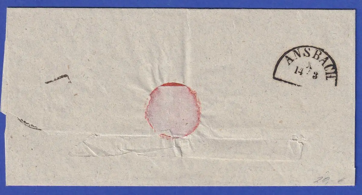 Rückseitig Halbkreis-Stempel ANSBACH und KOLMBERG.