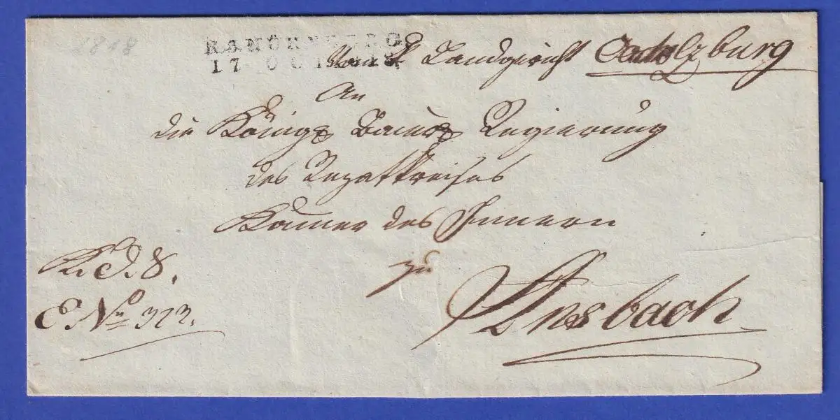 Bayern Dienstbrief mit Rayon-Stempel NÜRNBERG 1818