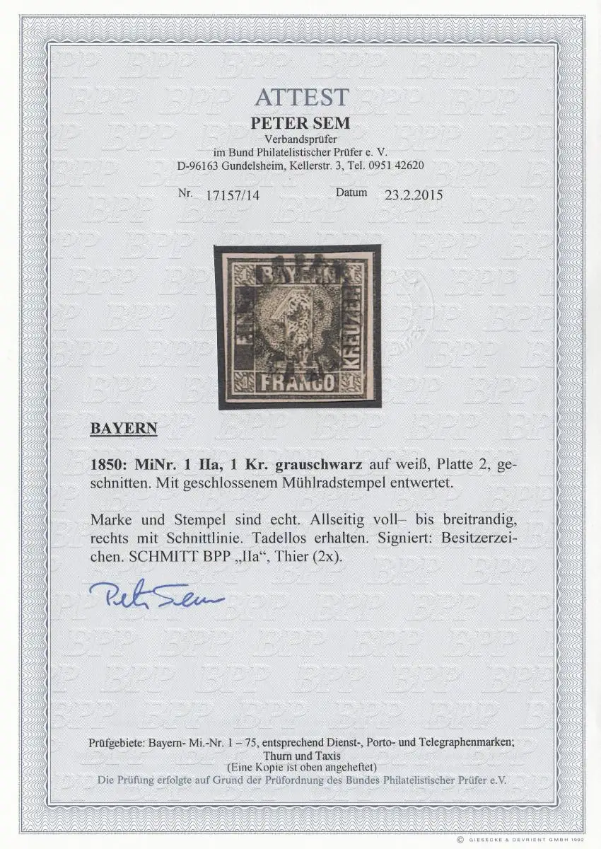 Bayern: IIa - gestempelt mit BPP Fotoattest