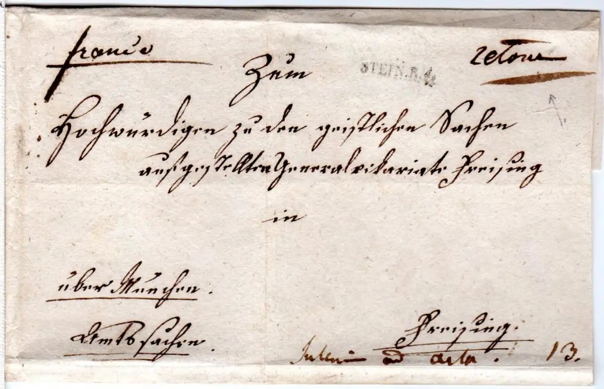 Bayern, L1 STEIN.R.4. auf Dienst Brief n. Freising u. "franco" retour