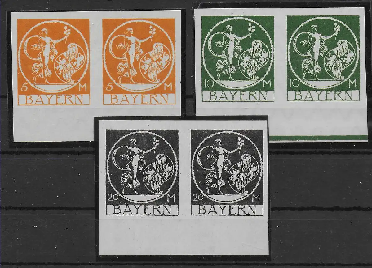 Bayern: MiNr. 193-195U, waagrechtes Paar, **