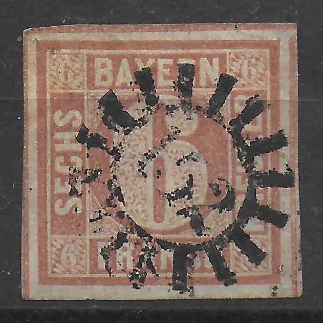 Bayern: MiNr. 4 I, gestempelt mit 3 vollen Schnittlinien