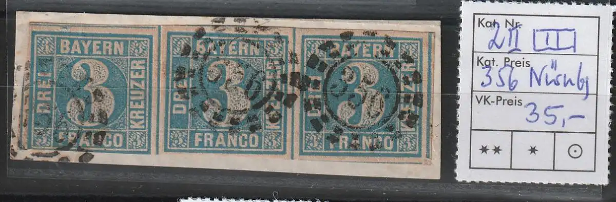 Bayern: Nr. 2 II im Dreierstreifen mit Mühlradstempel 356