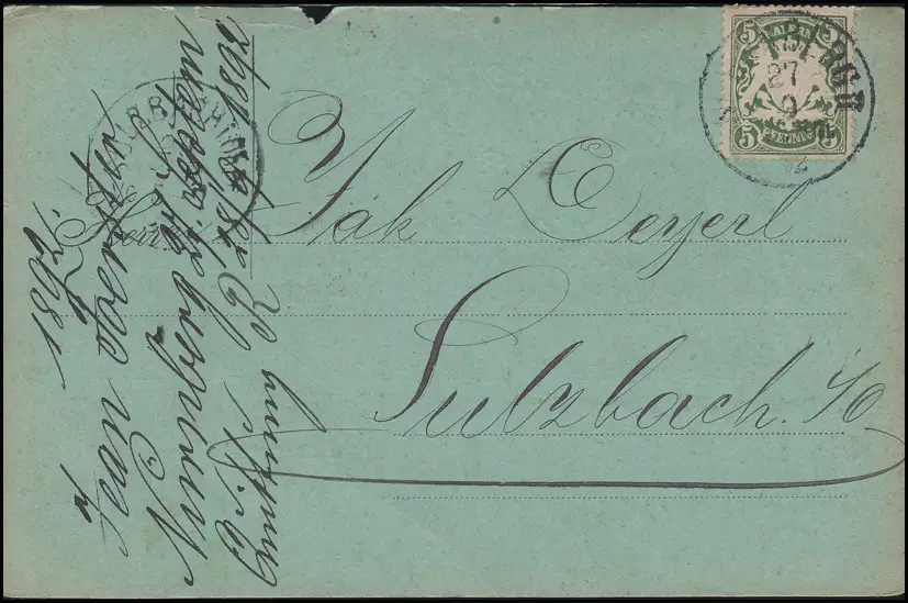 Bayern Wappen 5 Pf EF Postkarte NÜRNBERG II. - 27.9.92 nach SULZBACH 28.9.