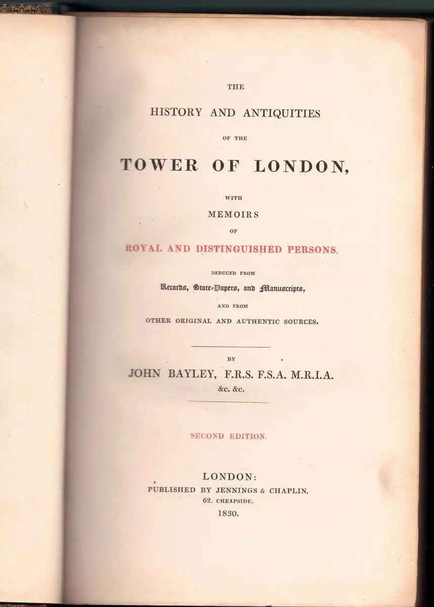 Bayley, John: The history and antiquities of the Tower of London, with memoirs of royal and distinguished persons, deduced from records, State-Papers, and Manuscripts, and from other original and authentic sources. 2. ed.