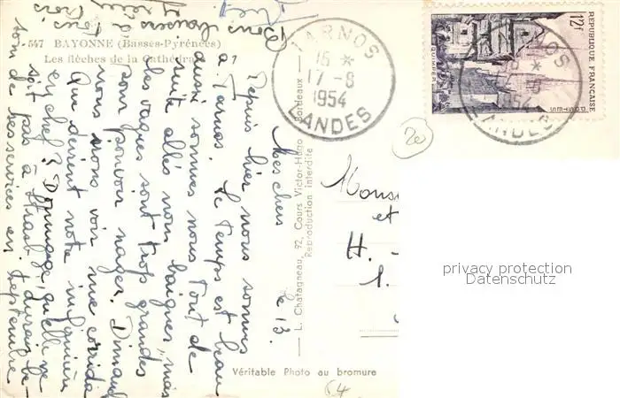 Bayonne_Pyrenees_Atlantiques Cathedrale Bayonne_Pyrenees postalisch gelaufen 1954 Erhaltung siehe scans [LiesaD40] LiesID40
