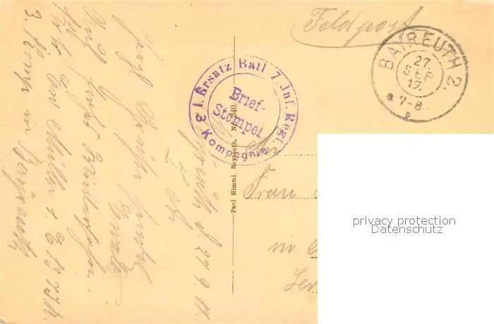Bayreuth Wittelsbacher Brunnen Bayreuth postalisch gelaufen 1917 Feldpostkarte Erhaltung siehe scans [WerneD78] Feldpostkarte WernPID7