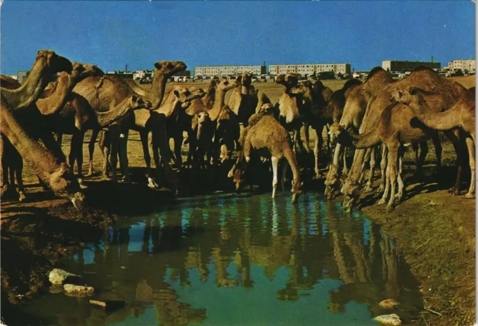 Beer Sheva בְּאֵר שֶׁבַע באר-שבע - גמלים ליד מקוה מים/ Kamel Israel AK 1975
