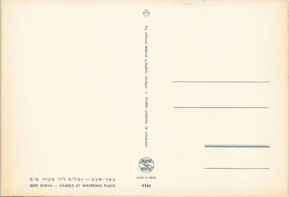 Name: CAMELS AT WATERING PLACE, Kamel Kamele, Israel AK