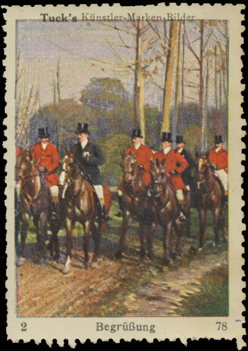 Jagd mit Hunden, Serie 78, Bild 2, Tucks Künstler-Marken-Bilder, Propaganda-Marke, Auflage 3000, Größe/Zustand: 7x4 , guter Zustand, Original alte Reklamemarke die seinerzeit für die Werbung benutzt wurde