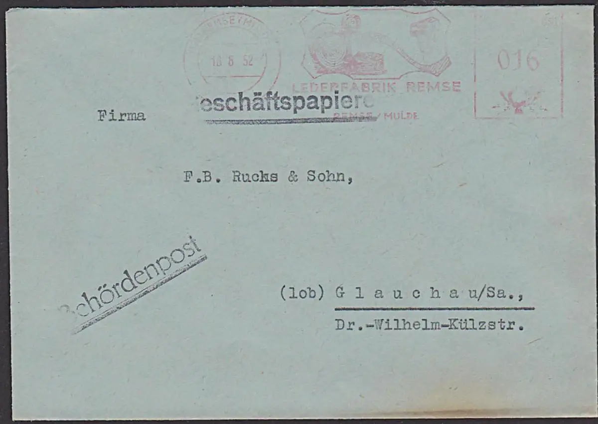 Behördenpost AFS REMSE (MULDE) Lederfabrik 1952