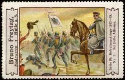 Serie 10, Befreiungskriege 1813-15, Bild 5, Größe/Zustand: 5x7 , guter Zustand, Original alte Reklamemarke die seinerzeit für die Werbung benutzt wurde