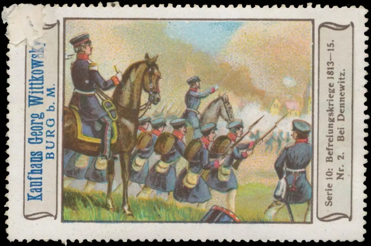 Serie 10: Befreiungskriege 1813-15, Nr. 2, Größe/Zustand: 5x7 , beschädigt, Original alte Reklamemarke die seinerzeit für die Werbung benutzt wurde