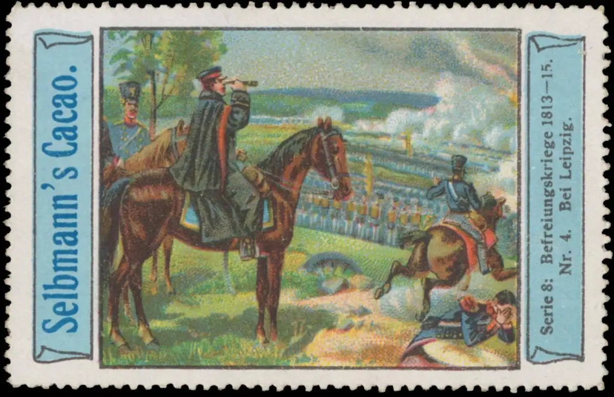 Serie 8 Befreiungskriege 1813-15, Nr. 4, Selbmanns Cacao, Kakao, Größe/Zustand: 5x7 , guter Zustand, Original alte Reklamemarke die seinerzeit für die Werbung benutzt wurde