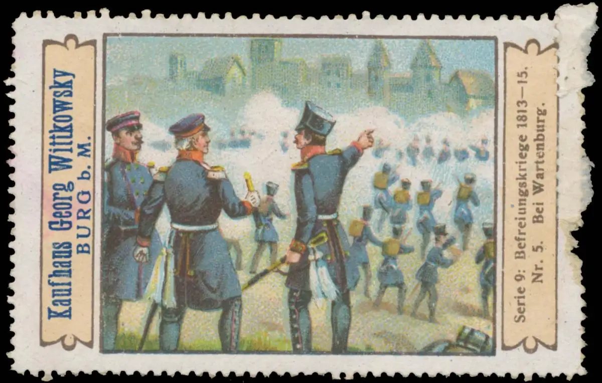 Serie 9: Befreiungskriege 1813-15, Nr. 5, Größe/Zustand: 5x7 , beschädigt, Original alte Reklamemarke die seinerzeit für die Werbung benutzt wurde