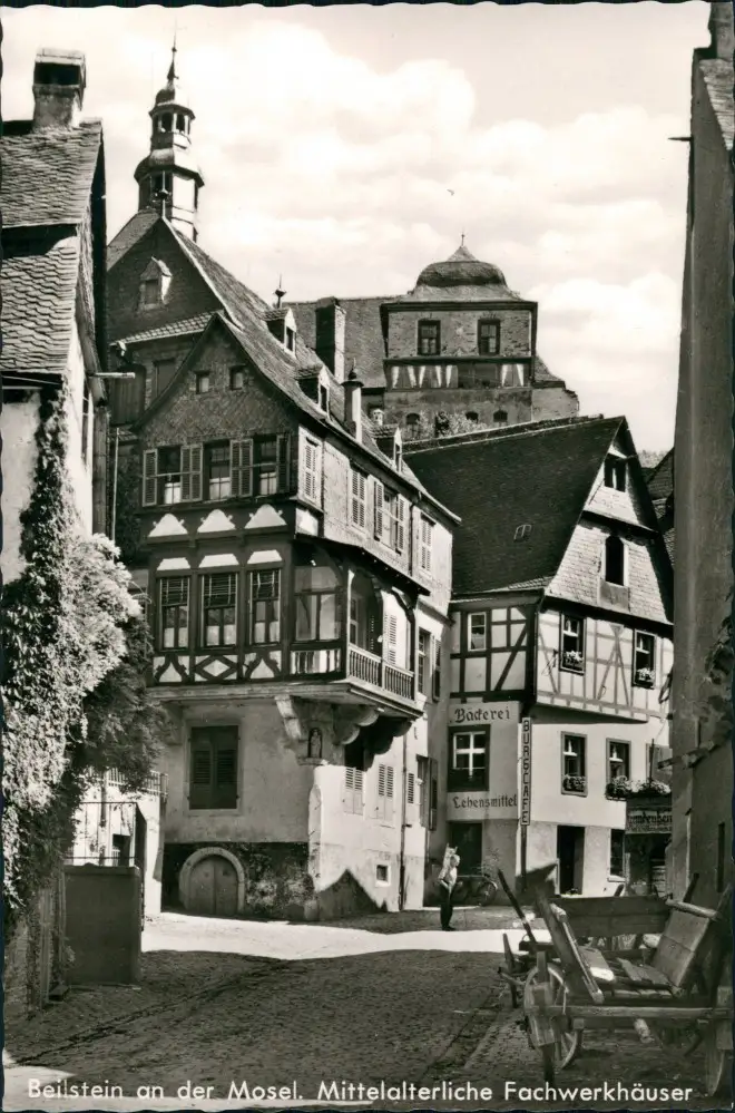 Beilstein (Mosel) Mittelalterliche Fachwerkhäuser ua. Bäckerei-Geschäft 1966