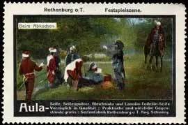Festspielszene, Aula - Seife, Seifenpulver, Bleichsoda und Lanolin - Toilette - Seife vorzüglich in Qualität - Praktische und nützliche Gegenstände gratis , Größe/Zustand: 5x7 , guter Zustand, Original alte Reklamemarke die seinerzeit für die Werbung benutzt wurde