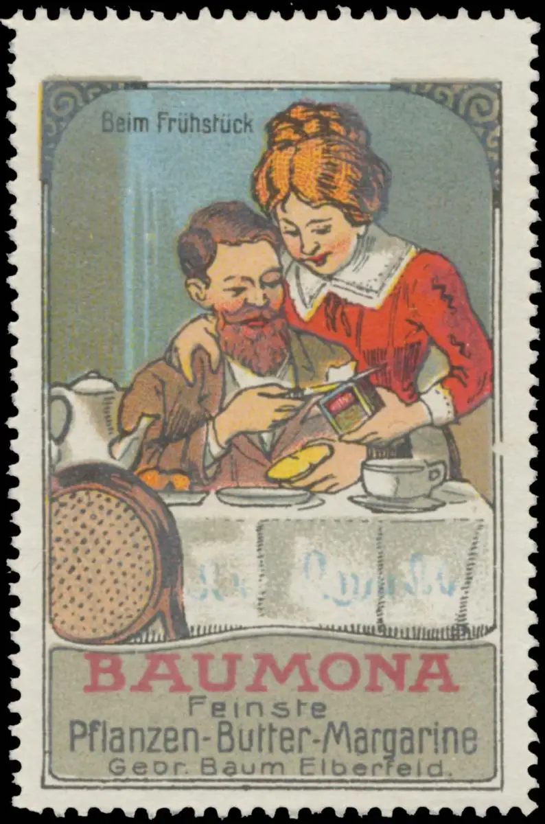 Baumona Margarine, Wuppertal, Größe/Zustand: 6x4 , guter Zustand, Original alte Reklamemarke die seinerzeit für die Werbung benutzt wurde