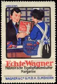 Echte Wagner Holsteinische Eigelbpflanzenbutter Margarine, Serie 3, No. 1, Größe/Zustand: 6x4 , guter Zustand, Original alte Reklamemarke die seinerzeit für die Werbung benutzt wurde
