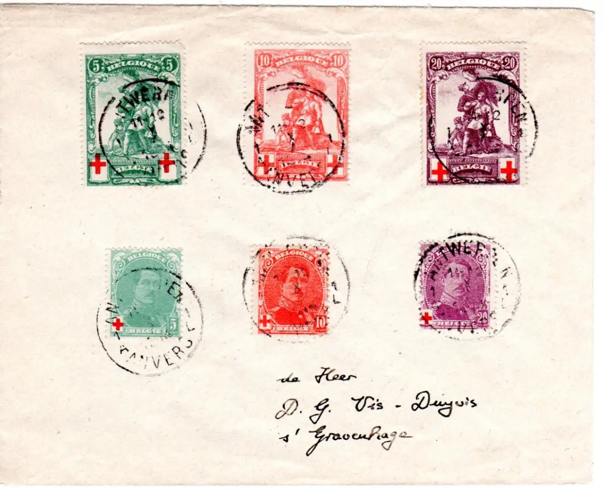 Belgien 1914, Rotes Kreuz Ausgabe, 6 Werte kpl. auf Brief v. Antwerpen