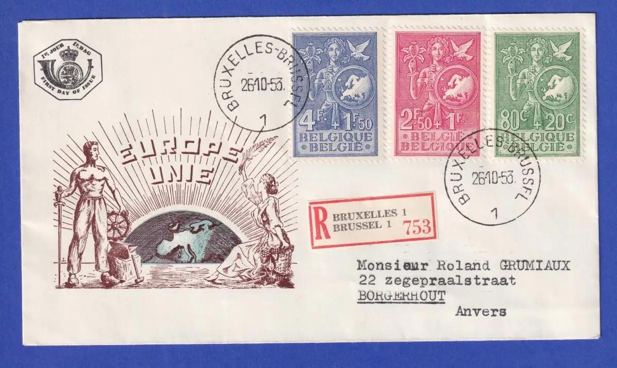 Belgien 1953 Büro der Europäischen Jugend Mi.-Nr. 976-978 auf FDC