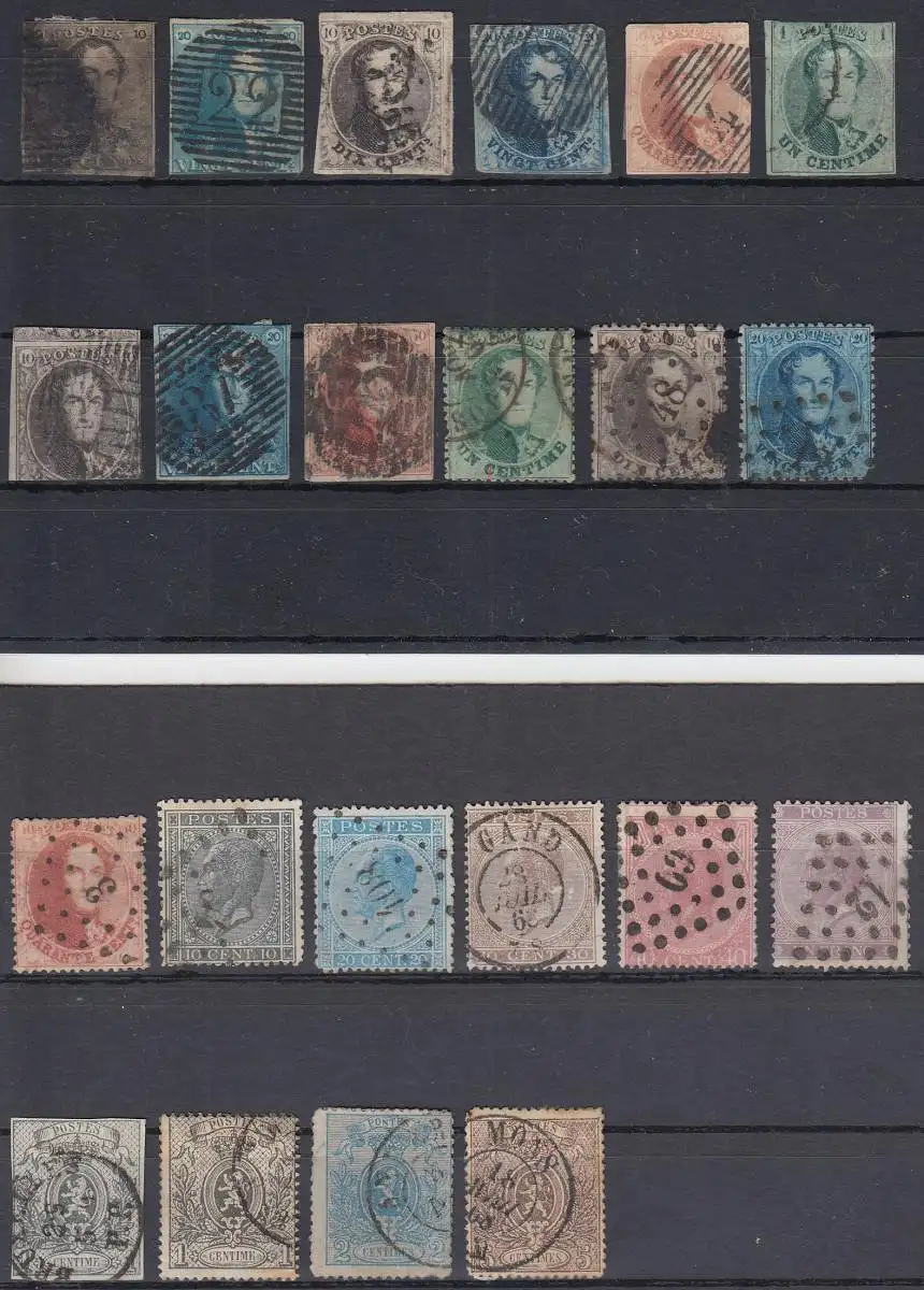 Belgien Mi.Nr. 1-22, jede Marke 1x in gestempelt, sehr untersch. Qualität!