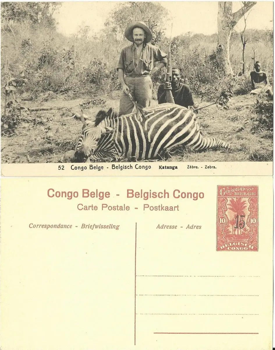 Belgisch Congo, ungebr. 15/10 C. Bild Ganzsache m. Abb. Jäger m. Zebra. H&G55