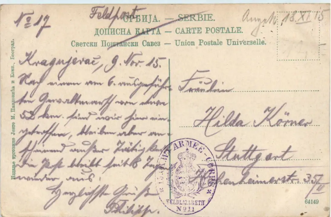 Belgrade - L Universite - Feldpost 13. KW Armee Corps -460258