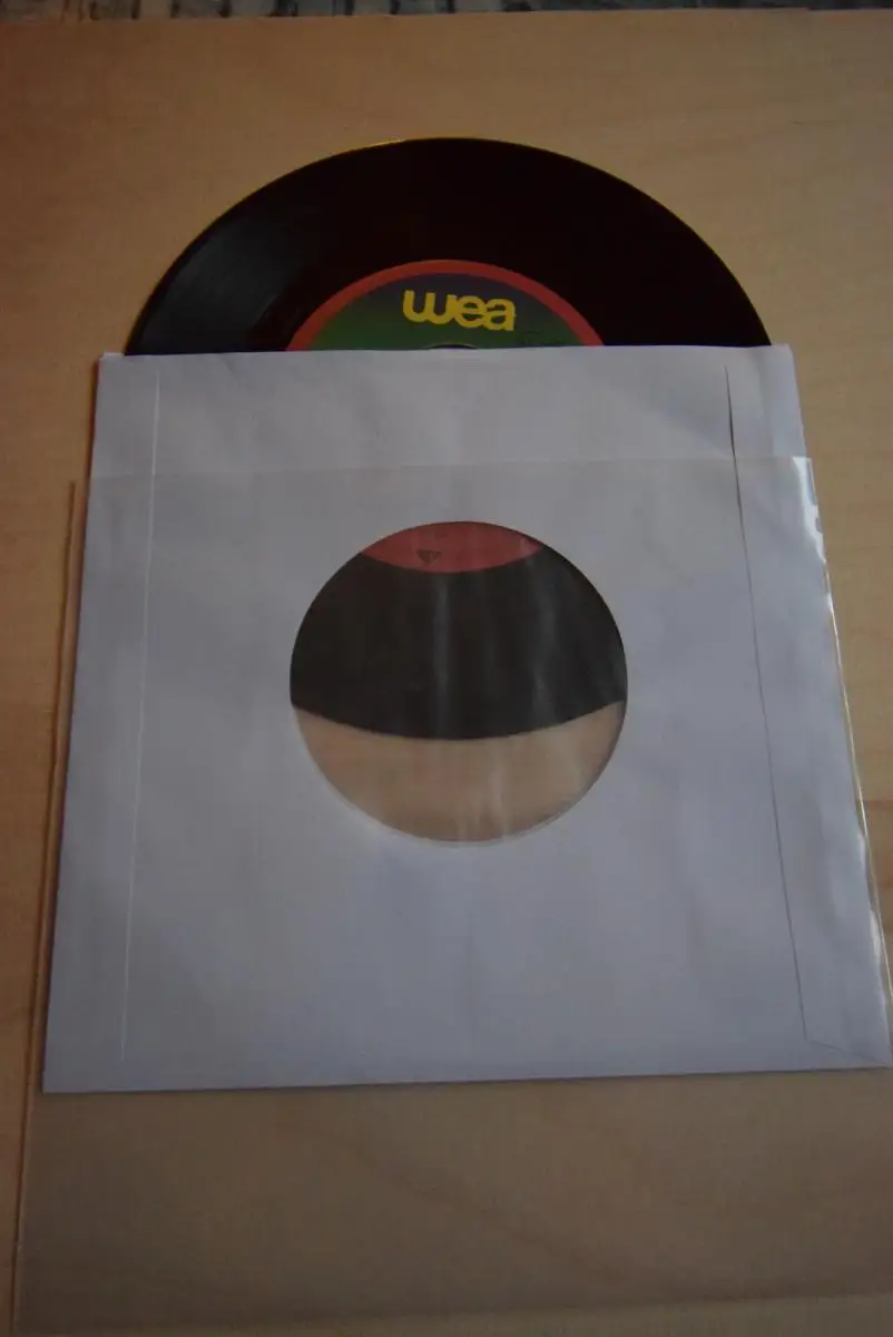 ALLE Singles kommen deswegen auch in neuer , neutraler Innenhülle und zusammen mit dem Cover in einer PE Außenhülle wie auf den Bildern auch zu sehen . Ebenfalls sind ALLE Singles gewissenhaft gereinigt (gewaschen) .