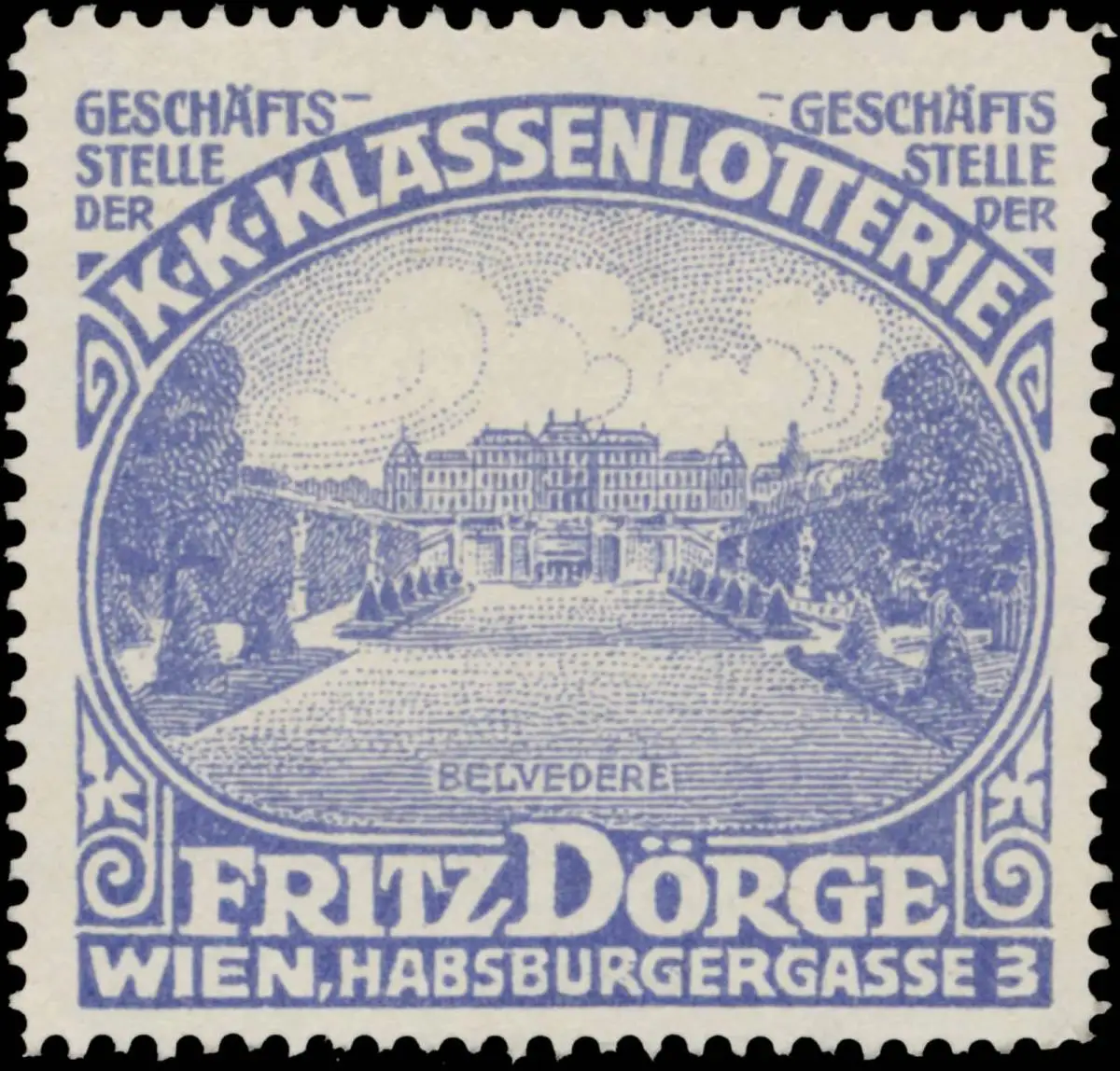 Geschäftsstelle der k.k. Klassenlotterie, Lotterie, Größe/Zustand: 4x4 , guter Zustand, Original alte Reklamemarke die seinerzeit für die Werbung benutzt wurde