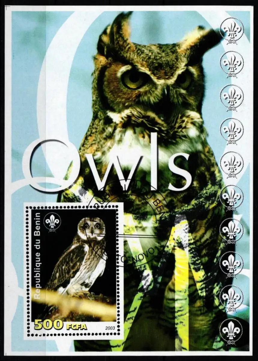 Benin Eule aus Jahr 2003 gestempelt als Block #KO856