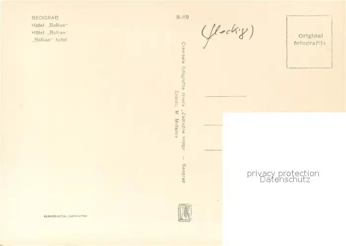 Beograd_Belgrad Hotel Balkan Beograd Belgrad postalisch nicht gelaufen 1921-1965 Erhaltung siehe scans [FriedD77] Frierer