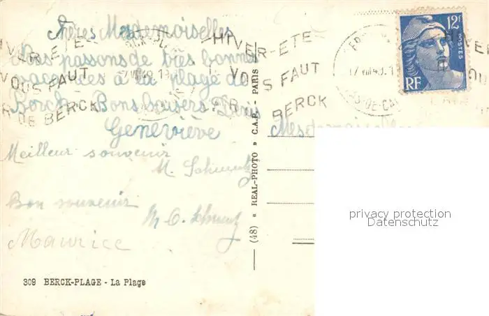 Berck-Plage La Plage Berck-Plage postalisch gelaufen 1949 Erhaltung siehe scans [WerneD78] WernPID7