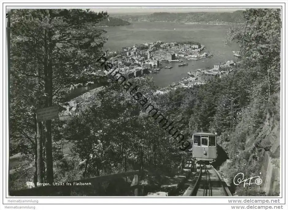 Bergen - Utsikt fra Floibanen - Bergbahn - Enerett Eberh. B. Oppi Oslo - rückseitig Klebepunkte (E37010) *