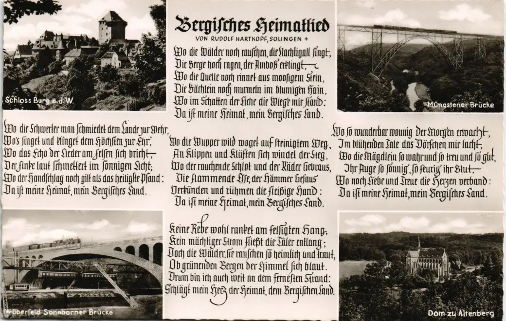 Bergisches Land & Heimatlied Lied Text R. Hartkopf Solingen 1958