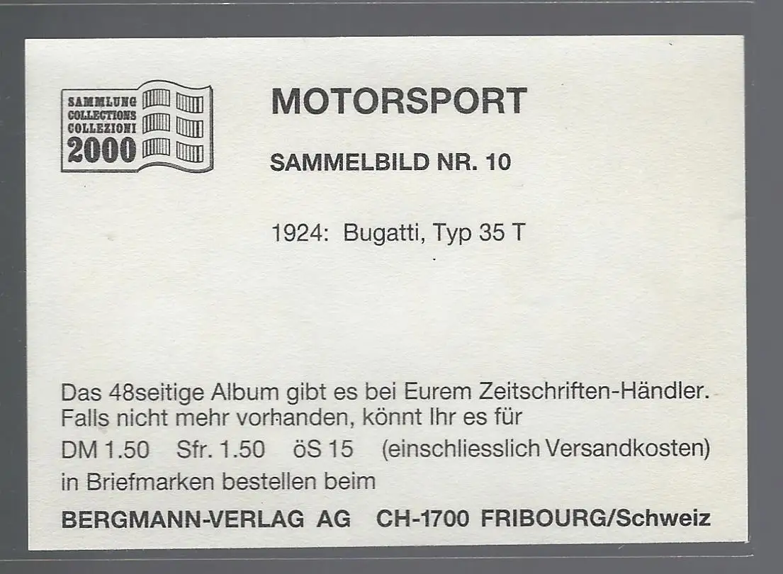 Bergmann Motorsport. Sammelbild Nr.10 1924 Bugatti Typ 35T