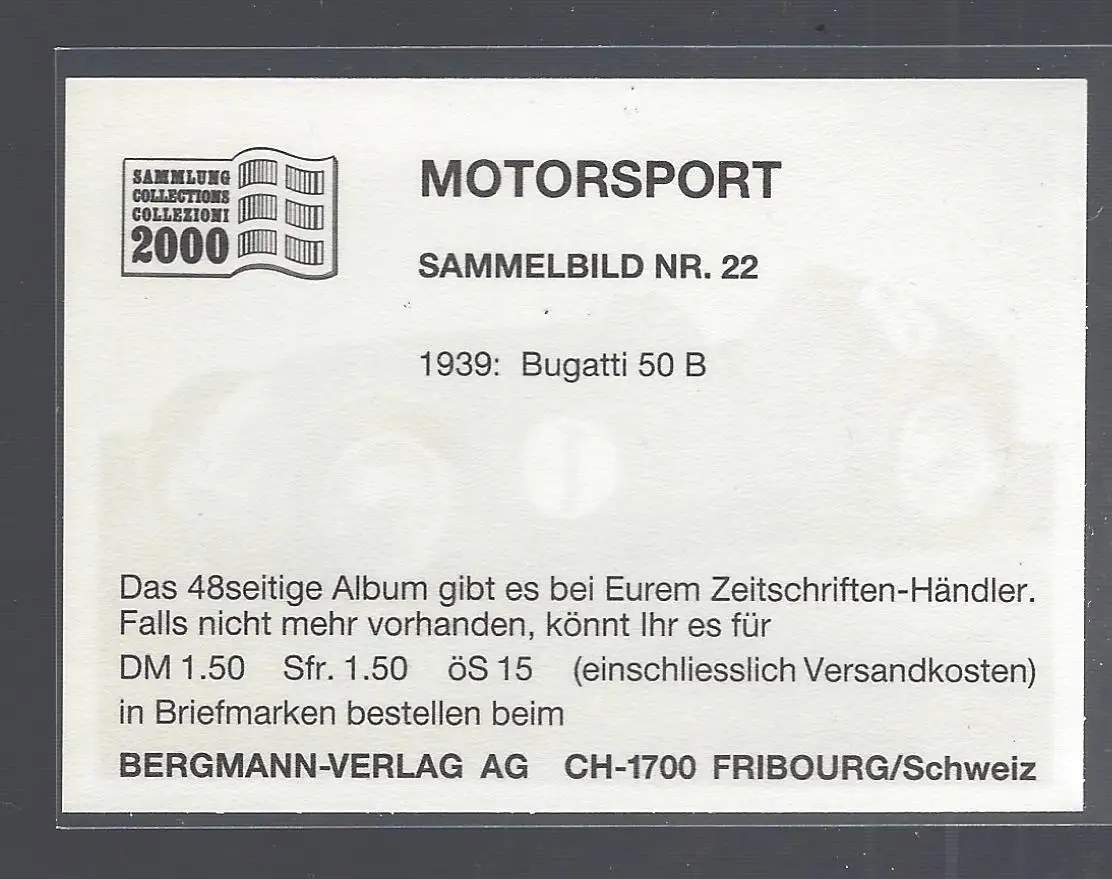 Bergmann Motorsport. Sammelbild Nr.22 1939 Bugatti 50B