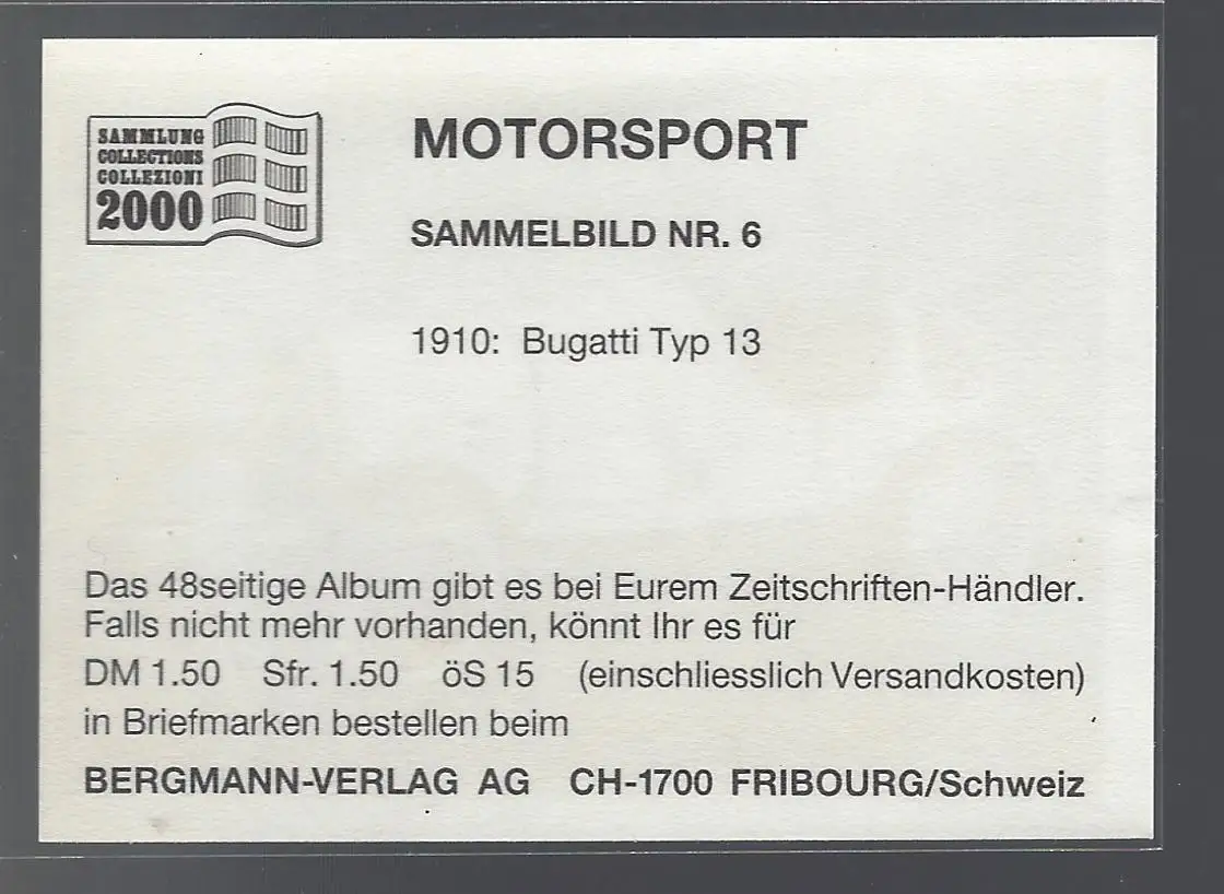 Bergmann Motorsport. Sammelbild Nr.6. 1910 Bugatti Typ 13