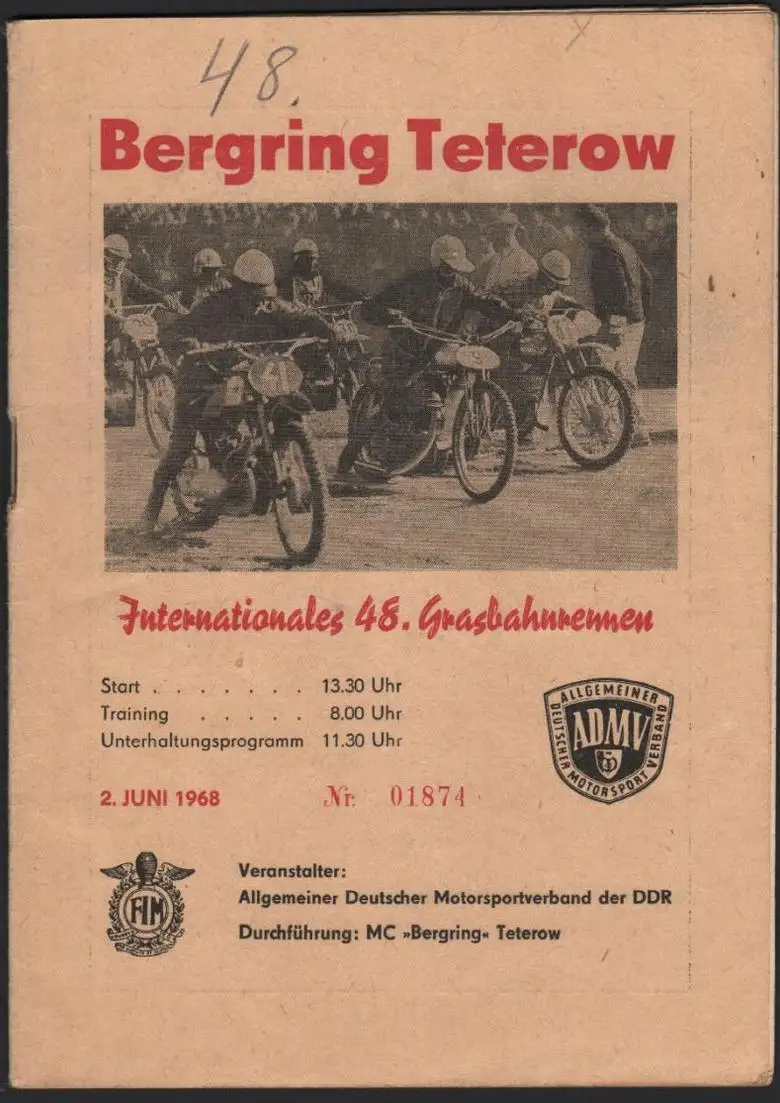 Bergring Teterow 2.06.1968 , Grasbahn , Rennprogramm , Rennprogramm , program !