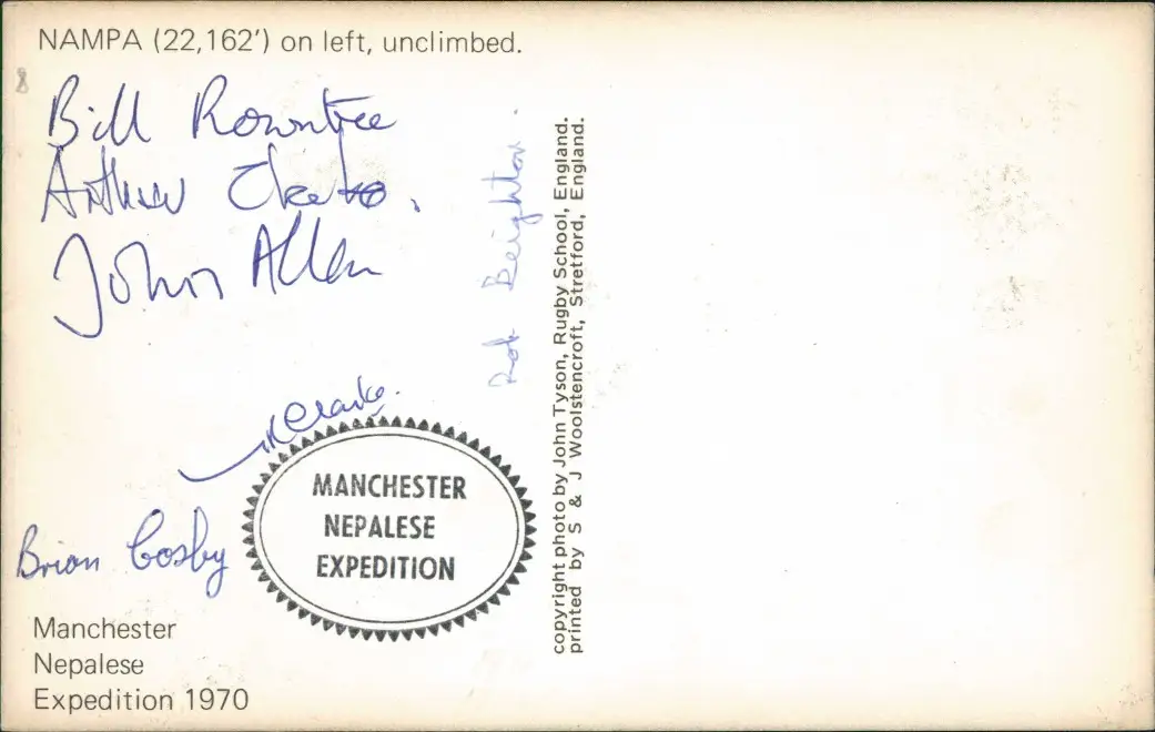 Bergsteiger Manchester Nepalese Expedition Nampa original Autogramme 1970