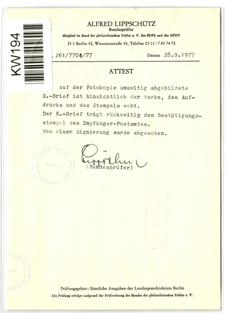 Berlin 17 auf Brief Einschreiben, Attest Lippschütz #KW194