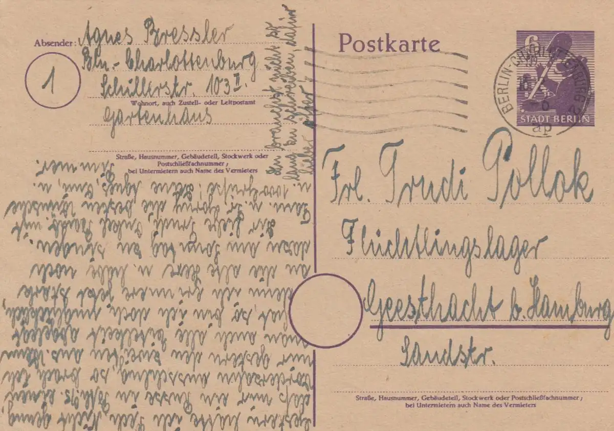 Berlin 1946 Ganzsache nach Geesthacht