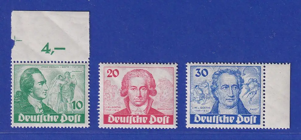 Berlin 1949 Goethe-Satz 3 Werte Mi.-Nr. 61-63 postfrisch ** Nr. 61 Oberrand !
