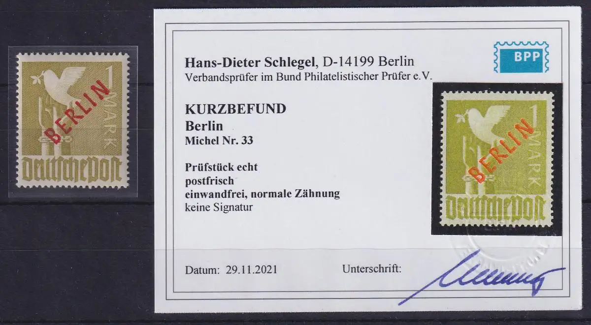 Berlin 1949 Rotaufdruck 1 Mark Mi.-Nr. 33 postfrisch ** gepr. KB SCHLEGEL BPP