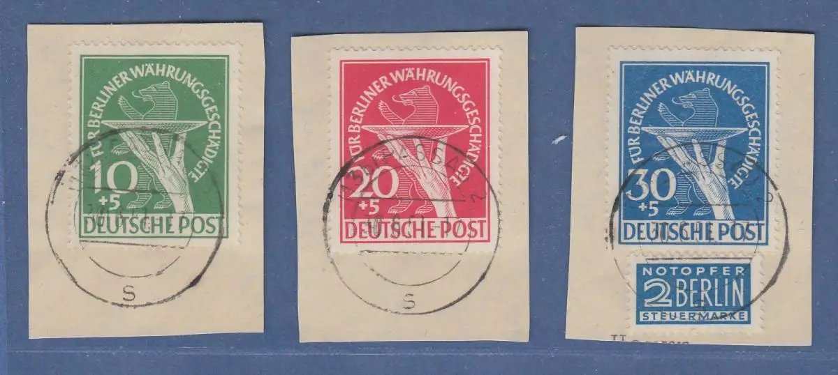 Berlin 1949 Währungsgeschädigte Mi.-Nr. 68-70 Satz gest. PASSAU , gepr. BPP