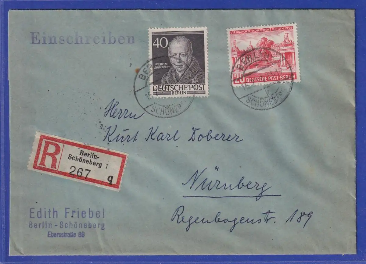 Berlin 1954 Humboldt Mi.-Nr. 100 in MIF auf R-Brief aus Berlin-Schöneberg