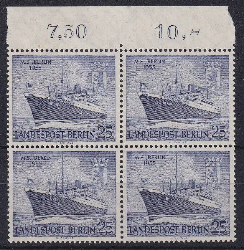 Berlin 1955 Motorschiff Berlin Mi.-Nr. 127 Oberrandviererblock postfrisch **