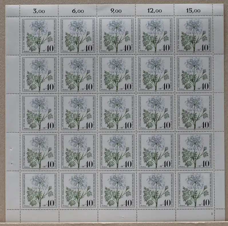 Kompletter Bogen, ungefaltet und nicht angetrennt. Die Abbildung ist exemplarisch!